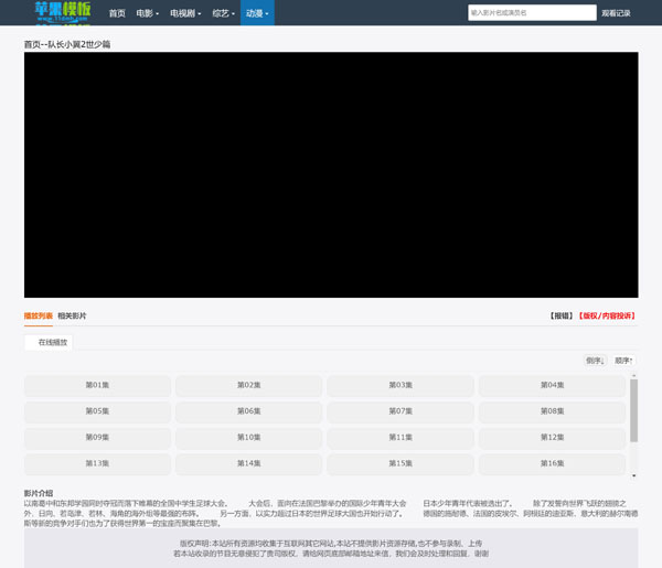该模版是以黑色影视网站自适应模板4号为蓝本,升级优化而来,同样以简约、大气为目标,只是该版本删减了首页底部四栏文字,并对详情页、播放页调整为了通栏,而非传统的左右栏设计,使之更加的聚焦。