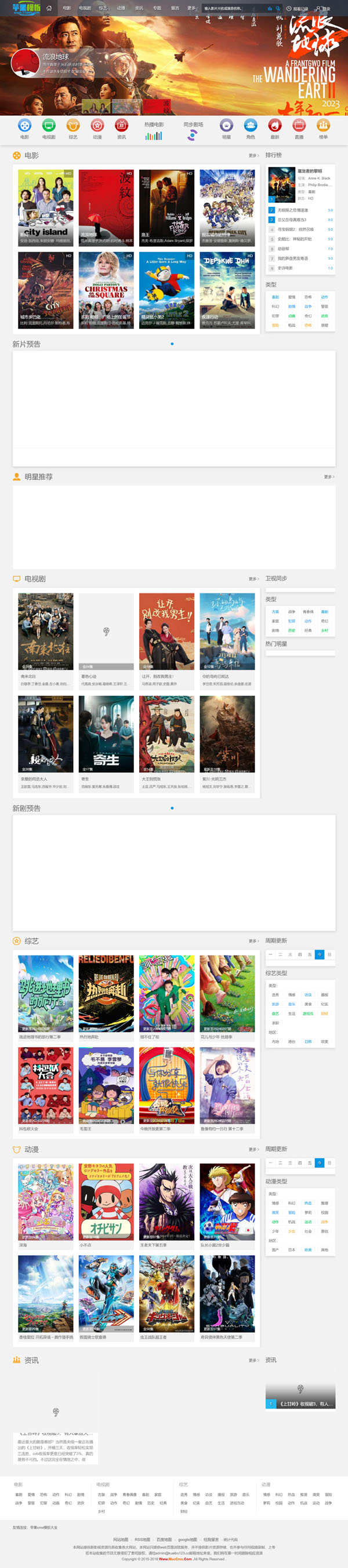 经典黑色大气影视网站风格,页面布局合理大气,且预留了新片预告、明星推荐、资讯等版面,使页面的原创性极高,特别适用于seo优化。