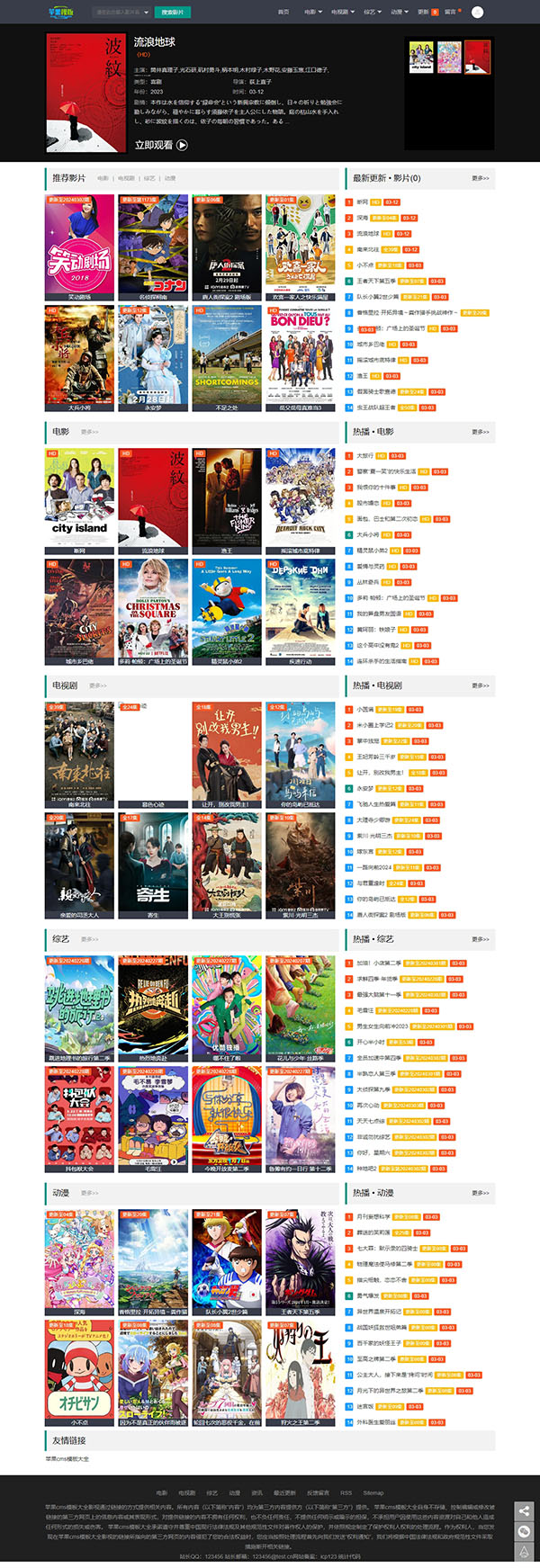 该模板是以黑色影视网站自适应模板3号为基础,美化升级而来,保持了经典影视网站设计风格,主要升级适用于苹果cms10版本。