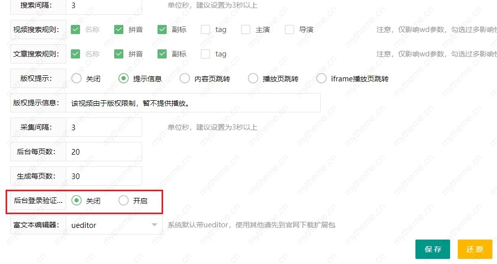 苹果cms怎么关闭验证码登陆后台 作者: • 更新时间:2025-11-18 00:00:00 •阅读 我们在调试网站的时候对于后台的登陆验证感觉有点繁琐,有没有暂时关闭后台登陆验证码的开关呢?答案是肯定的。1.来到苹果cms后台按顺序点击【系统】 【网站参数配置】【 性能优化】下拉到底部就可以看到 2.下图红框的地方就是后台登陆验证的开关 直接关闭即可。 3.修改完后的效果已经取消了验证码登陆,是不是很简单。 本文由发布,不代表苹果CMS模板网立场,转载联系作者并注明出处:/Macjc/1015.html
