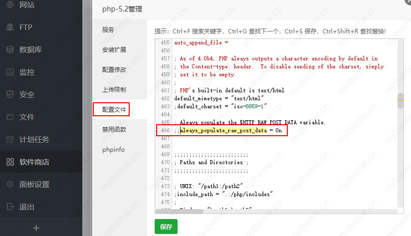 打开宝塔面板里面的软件商店>php> 配置文件。然后搜索always_populate_raw_post_data,找到之后将前面的分号去掉,(就是将前面的;去掉)