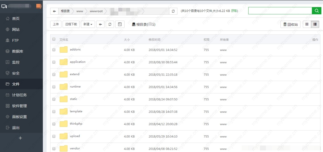 2、下载完成后上传到服务器根目录下,可以使用FTP工具上传,我使用的是宝塔,一方面是上传速度比较快,还有一个原因是因为FTP工具上传有可能需要设置权限,使用宝塔就比较方便了,上传完成后解压。