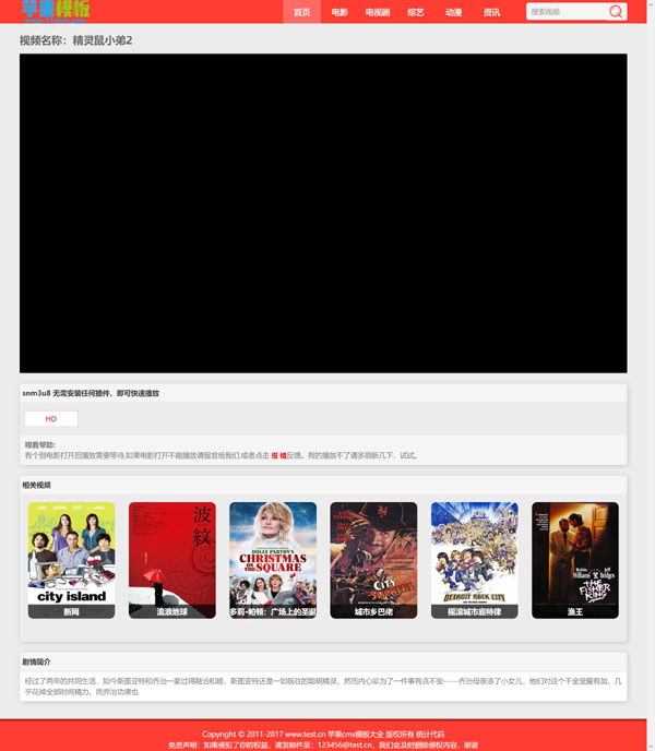 近期找我要极简风格站长不少,看来大家都开始返璞归真了,所以花了一些时间做了这款,极简风格的影视网站模版,该模板最大特点就是,最大化追求版面及代码的极简主义,整个模板文件解压后,只有300kb,和市面上哪些动辄几Mb相比,绝对算得上极简,只是追求极简的人,就不要在乎跑马灯、幻灯片什么了,只保留了影视站最经典的布局,既左右栏设计和基础版面。苹果模板大全出品,必属精品,代码测试兼容性强,支持pc、wap自适应访问,推荐模板!