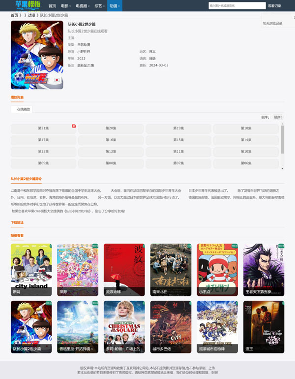 这套模板的母板是一款非常成熟影视自适应模版,这一版本针对于追求极简、聚集站长朋友;代码已经千锤百炼,无明显bug,支持pc、wap自适应访问,推荐模板!