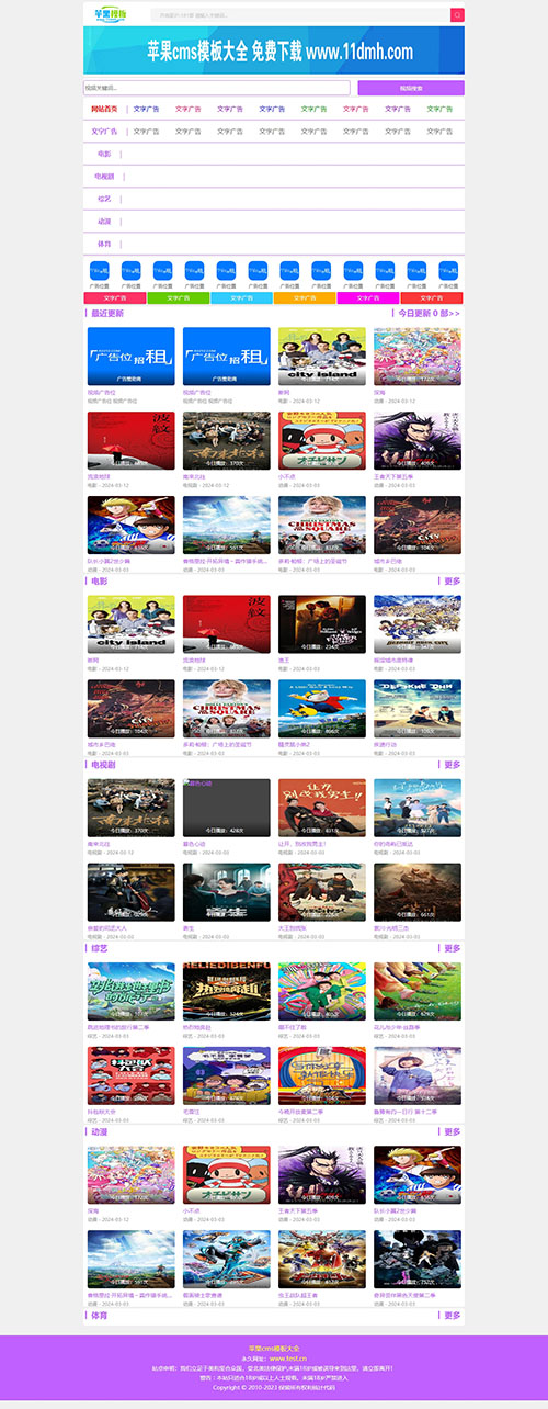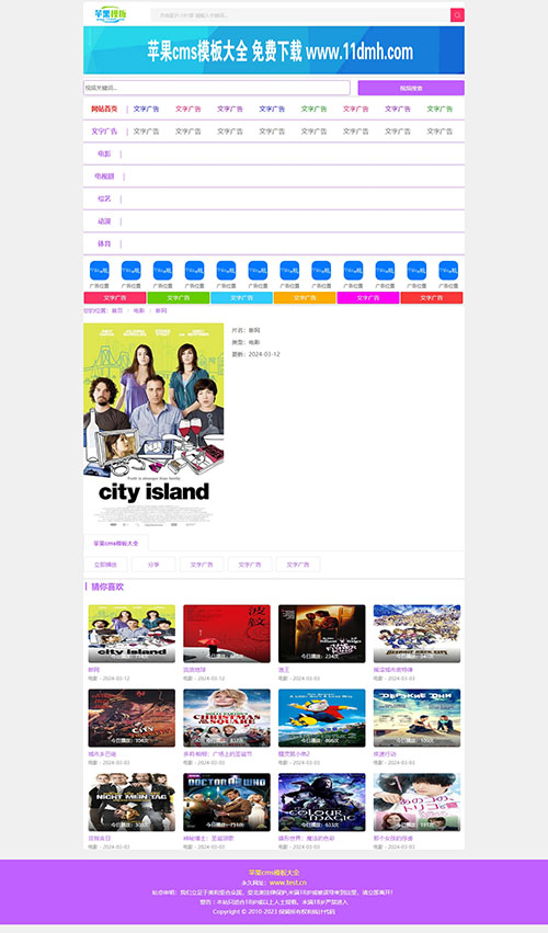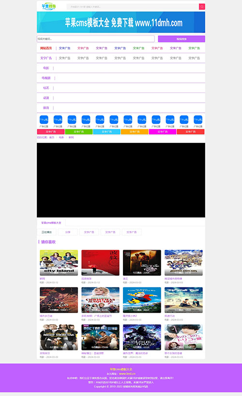 高贵紫色设计,代码兼容pc、wap自适应访问,特别适合于影视网站及影视站群,其模板文件简单,广告位都已经设置好了,并已修复原模板详情页及播放页剧集无法显示bug;可以直接拿来用。