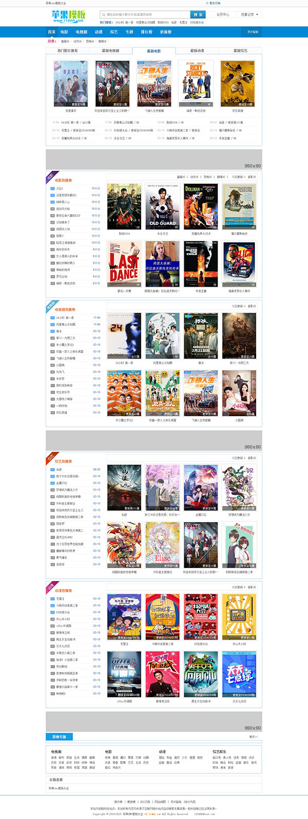 这是一款手机端非常出色苹果cms8模板,网上流传版本缺少栏目等模板文件,于是自己特意花时间将这款模板文件补齐,并搭配了pc端,使之成为了一款大气蓝色影视网站pc/wap双端模板。