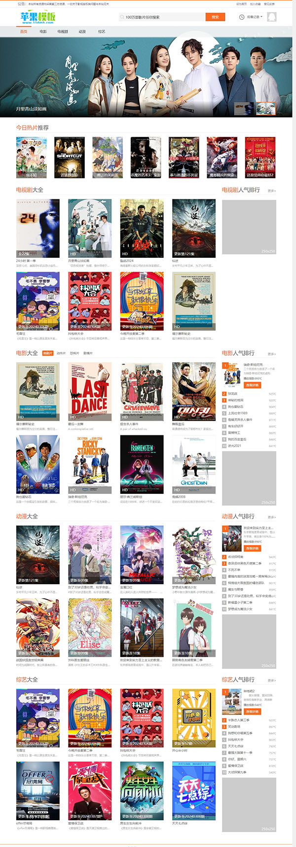 这是一款少有的适应苹果cms8,白色大气影视网站模板,而且难得的还是支持pc\wap双端模板,其首页幻灯需要设置推荐5,且有幻灯图片;页面布局合理,兼顾SEO优化,是一款推荐maccms8模板!