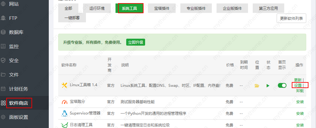宝塔面板操作步骤如下:软件商店----系统工具---linux工具箱设置