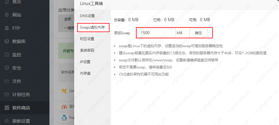 选择“swap/虚拟内存 "填写1500MB 确定即可。