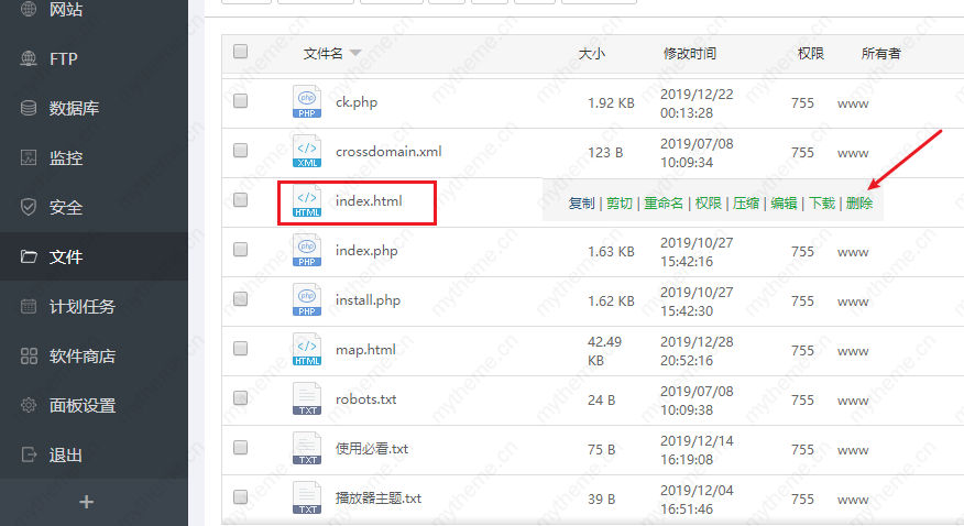 如果是误点导致怎么删除已经生成的首页呢?以宝塔面板为例,可以参照下面的截图步骤进行操作。