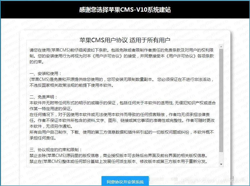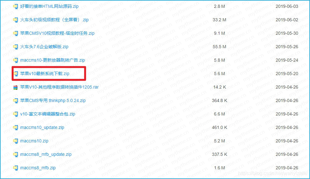 1、下载最新版的CMS,我下载的是V10版本。下载地址:https://www.mytheme.cn/article/189.html