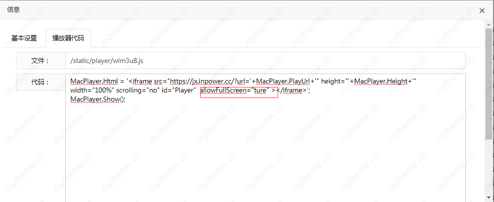 进入“播放器代码“添加修改即可