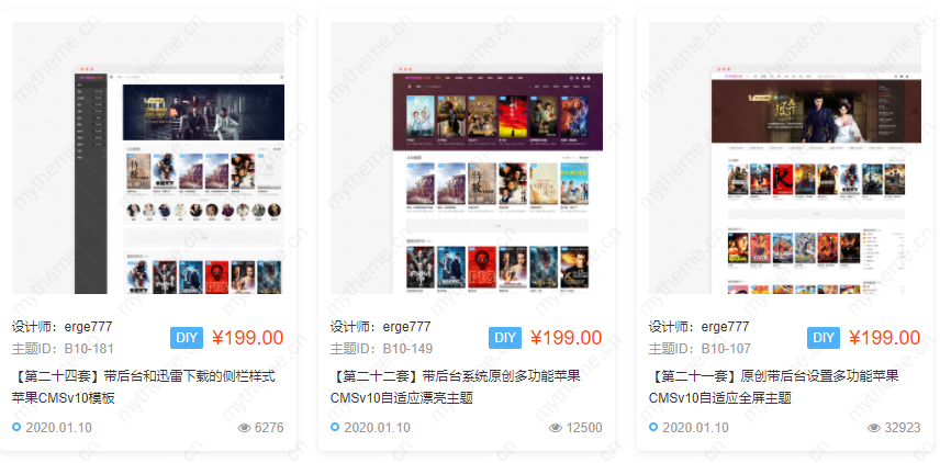 我的主题网苹果cms模板都是原创设计,如发现出售和我的主题网模板一样的均为盗版,请谨慎使用无售后和免费附带后门的盗版模板,毕竟你们要做的是一个网站,不是随便的打个酱油。基础性的安全意识还是要有的,如果你只是试水本站也有免费体验版供你测试使用。如果你是商用建议用最新的模板,优点是好优化功能多有专业的售后服务,永久使用包后期的免费更新。