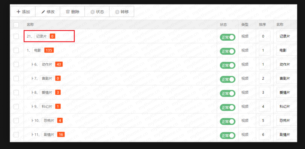 有时候我们在添加资源采集站绑定分类的时候 发现有些分类系统是没有的,比如下图的这个纪录片 苹果系统默认是没有这个分类的,如果你不想分这么细的话可以随便绑定到一个分类上 如果不想采集的话可以不绑定,如果我们需要网站上有记录片这个分类的话这就需要我们手动添加分类来进行绑定。