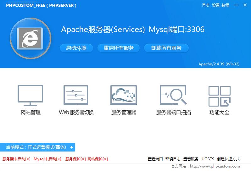 推荐二:PHPCUSTOM经测试phpstudy稳定性不高,经常使用一段时间后莫名其妙的各种报错,所以我的站长站又找了一款。