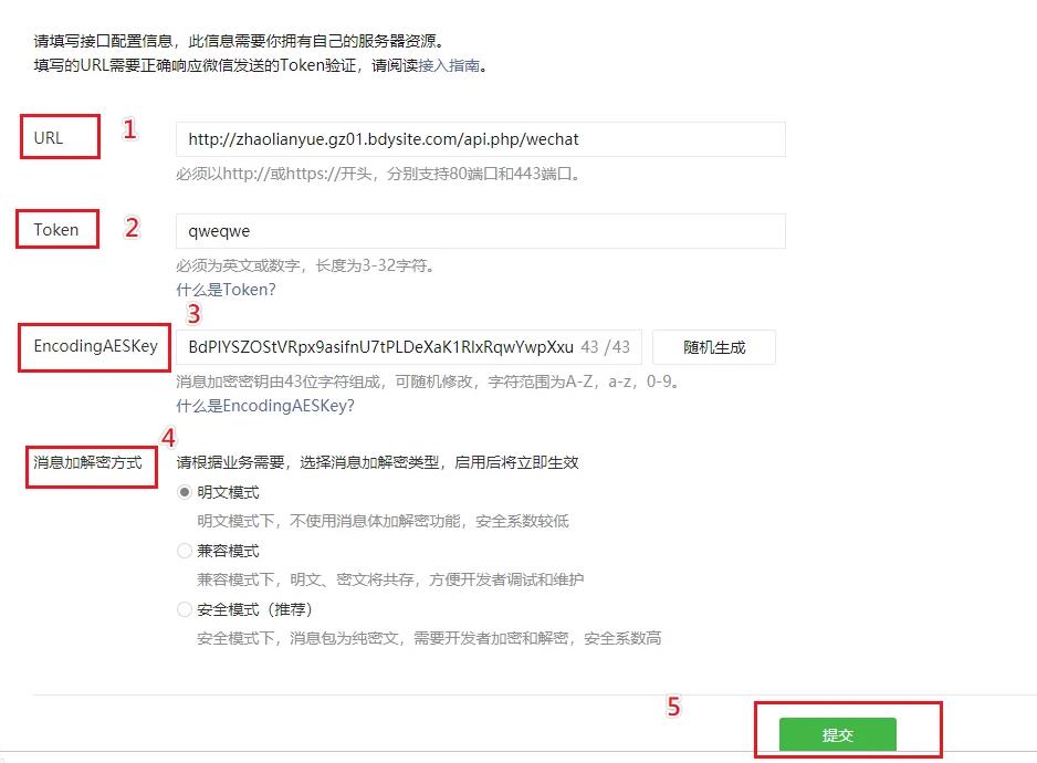 ①格式是:你的域名/api.PHP/wechat (注意域名要带上http或是https 结合自己的实际域名填写)