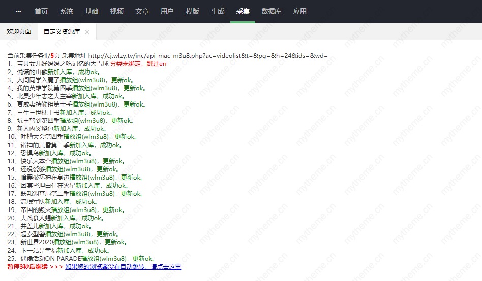 结束语:最后采集完后网站就应该有视频数据了 这个时候也是很多人困惑的地方 采集完了播放不了!这是为什么呢?因为你没添加播放器导致的。可以参考教程:苹果cms采集后无法播放原因排查及解决教程