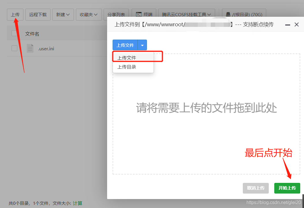 然后上传我们下载的苹果cms v10的压缩包到这里
